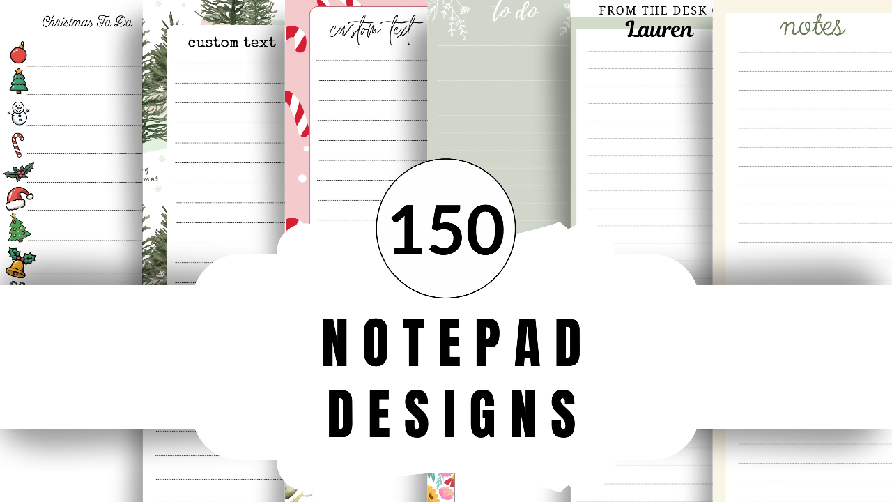 150 Editable Notepad Designs for Canva, available in 2 Sizes: 3"x7" and 5"x7"