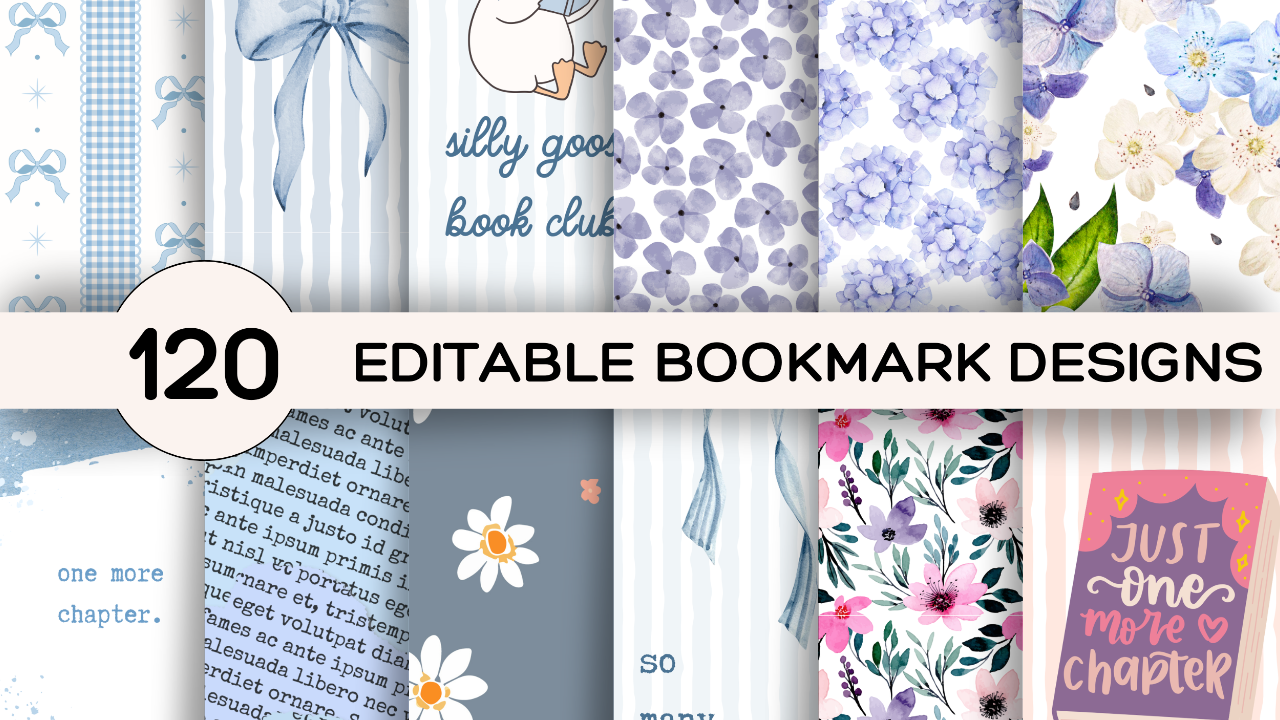 120 Editable Canva Design Templates for 6" x 2" Bookmarks