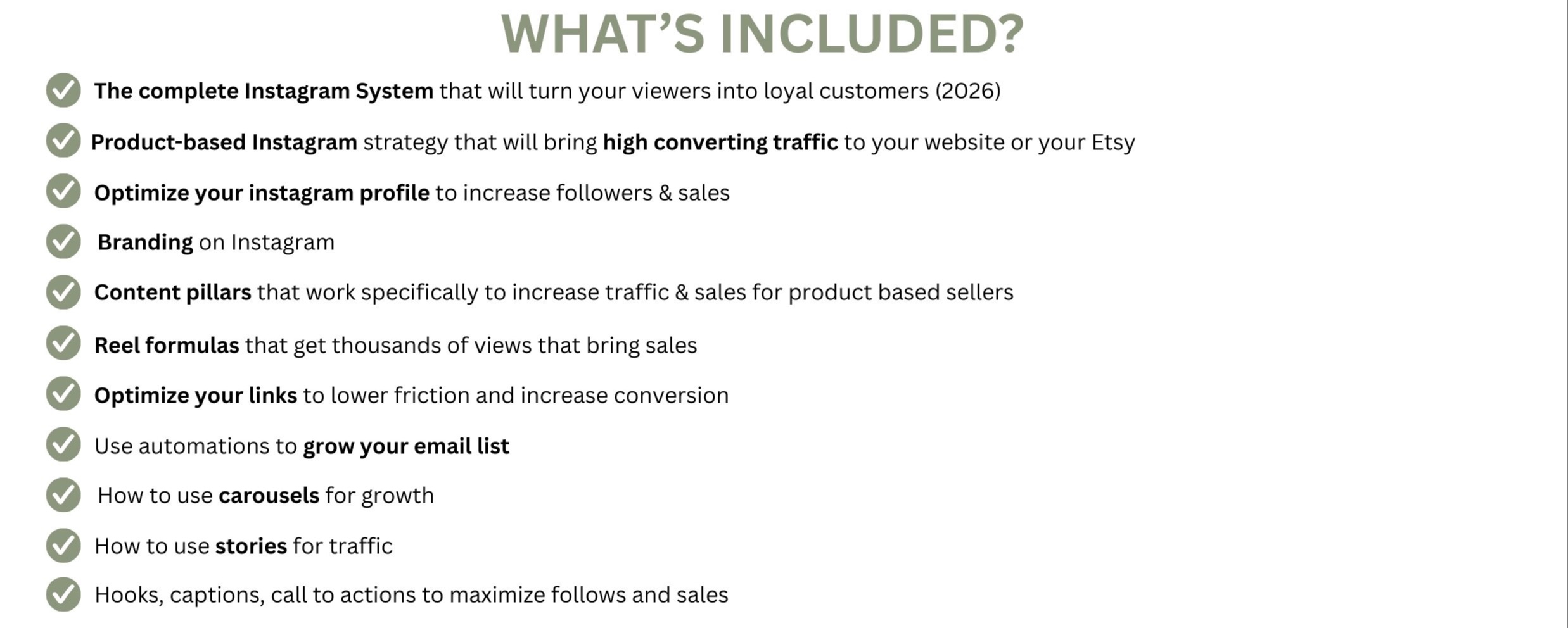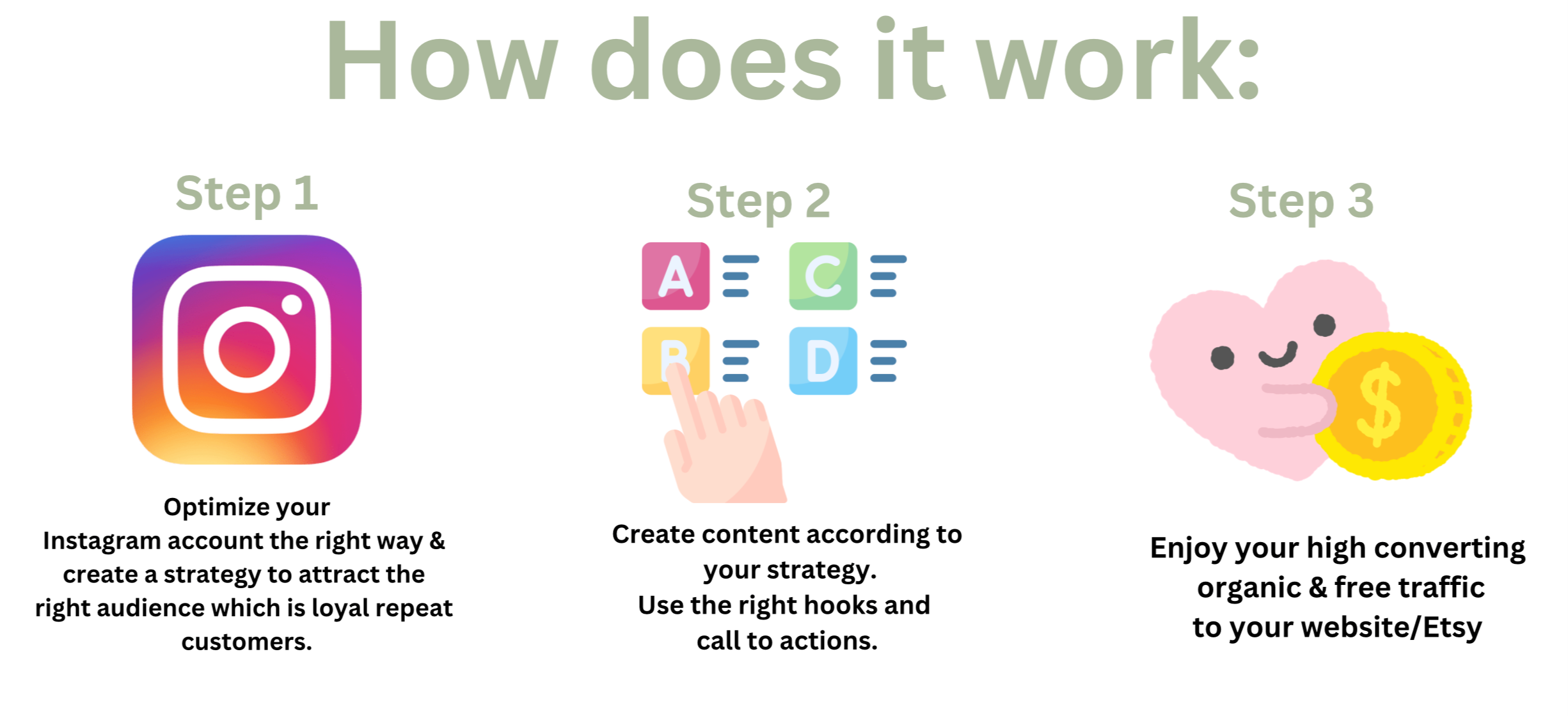 - You need a clear system that will grow your instagram organically & bring high converting traffic to your website/Etsy