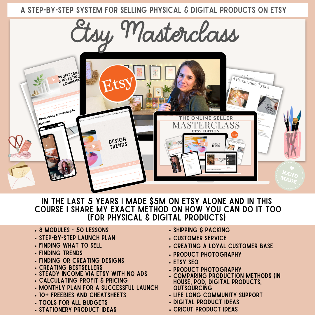 This course is built on the exact strategies I used to grow multiple Etsy shops from zero to multi-million-dollar sales,