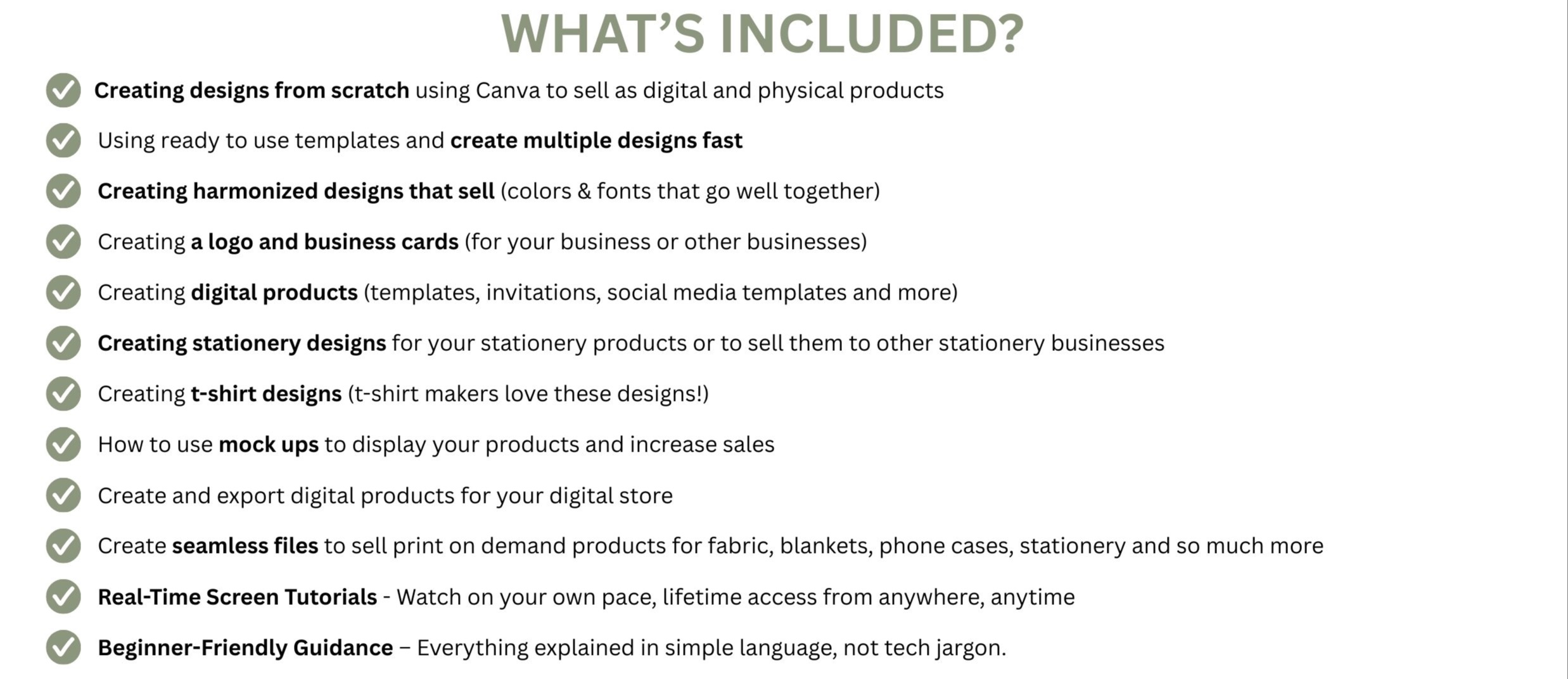 A beginner friendly step-by-step course that shows you how to create different types of product on Canva that you sell both as digital product or physical products (stationery, t-shirts and more)